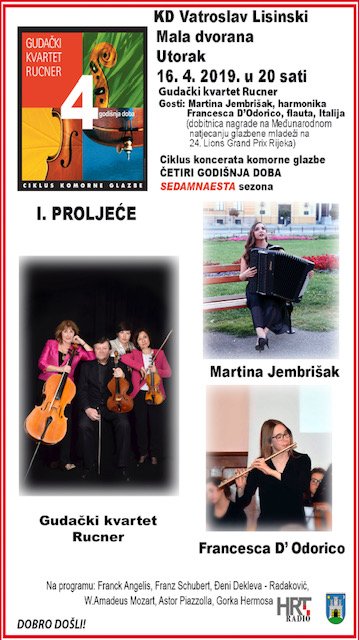 Concert with string quartet Rucner in concert hall Vatroslav Lisinski